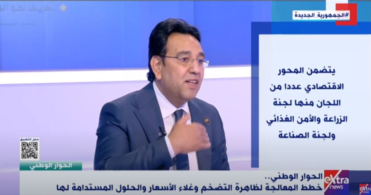 ونوه الدكتور أيمن محسب، إلى أنه لا بد من تشجيع التنمية الزراعية والصناعية في آن واحد، بالإضافة إلى منع الاحتكار، متهمًا جشع التجار في التسبب في زيادة الأسعار بنسبة 60%، مردفًا: “هذه المشكلة بحاجة لتشريع لتشديد الرقابة نحن بصدد إقراره حاليا”.