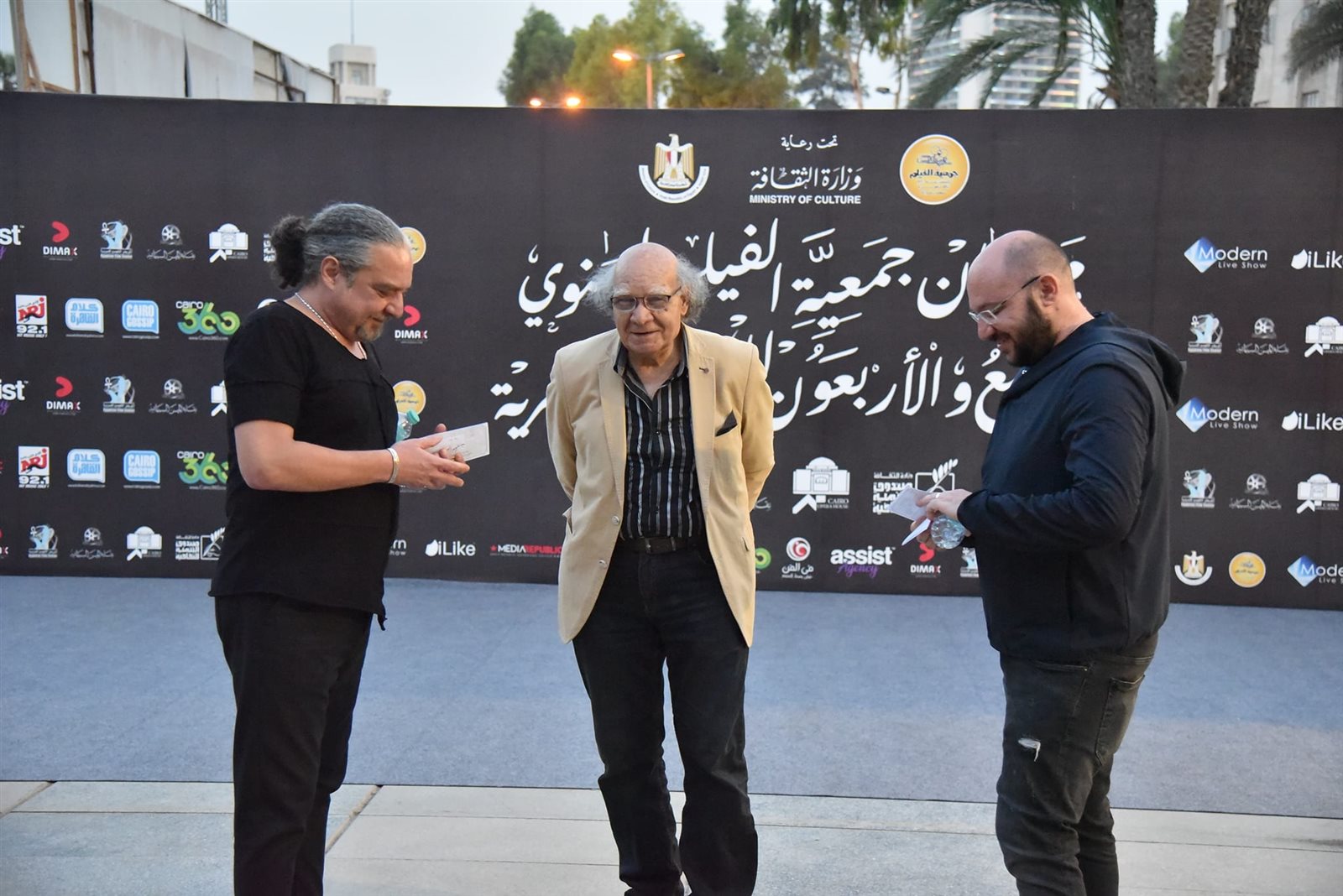 وشارك الفنان حسين فهمي ضيف شرف مهرجان جمعية الفيلم، والدكتور خالد عبد الجليل مستشار وزير الثقافة لشئون السينما، في توزيع شهادات الأفلام المشاركة في الدورة التاسعة والأربعين، مع مدير التصوير السينمائي محمود عبدالسميع رئيس المهرجان، بحضور صناع الأفلام ومنهم المنتج محمد حفظي، والمخرج هشام فتحي وتسلما شهادة فيلم "حامل اللقب" والمنتج هشام جمال، والمخرج خالد الحلفاوي وتسلما شهادة فيلم "تسليم أهالي"، وتسلم المنتج هشام عبدالخالق شهادة فيلم "الجريمة".