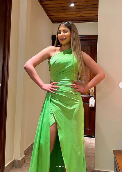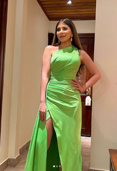 لفتت الفنانة ملك قورة الأنظار بإطلالة جذابة ومثيرة، مرتدية فستانا مجسم باللون "الأخضر" ينتمي الي قصة ألوان شولدر ويتميز بفتحة في منطقة الساق، مصمم من قماش بدون نقاشات، أكملت اللوك بإكسسورات فضية، مما أبرز جمالها وقوامها الممشوق.