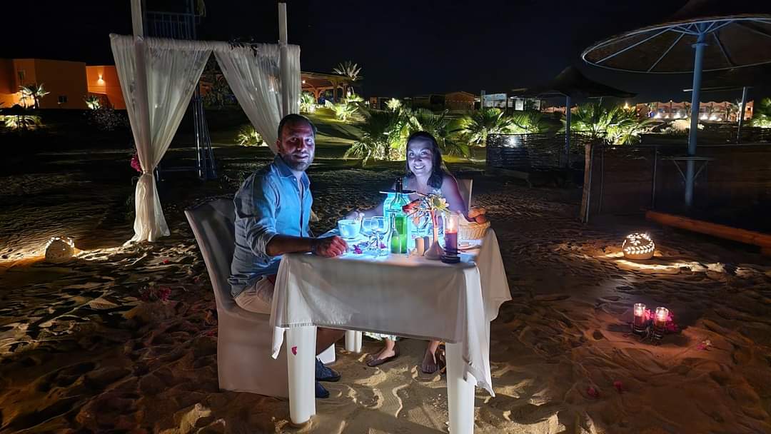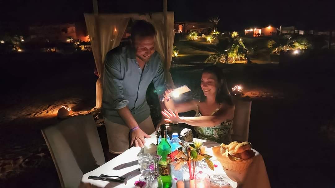 تم تنظيم حفل زفاف رومانسي بمشاركة عدد من السياح الأجانب من مختلف الجنسيات، إذْ احتفل العروسان تحت ضوء القمر وعلى إيقاع الموسيقى الساحرة وتم تجهيز بوفيه خاص وعشاء رومانسي لإضفاء المزيد من الأجواء الخاصة والسحرية على الحفل، وقال العروسان: “إنه لا يمكن نسيان هذه الليلة الرومانسية التي شهدت تبادل التهاني والتبريكات بين الحضور بما في ذلك التقاط الصور التذكارية لتوثيق هذا الزفاف السعيد”.