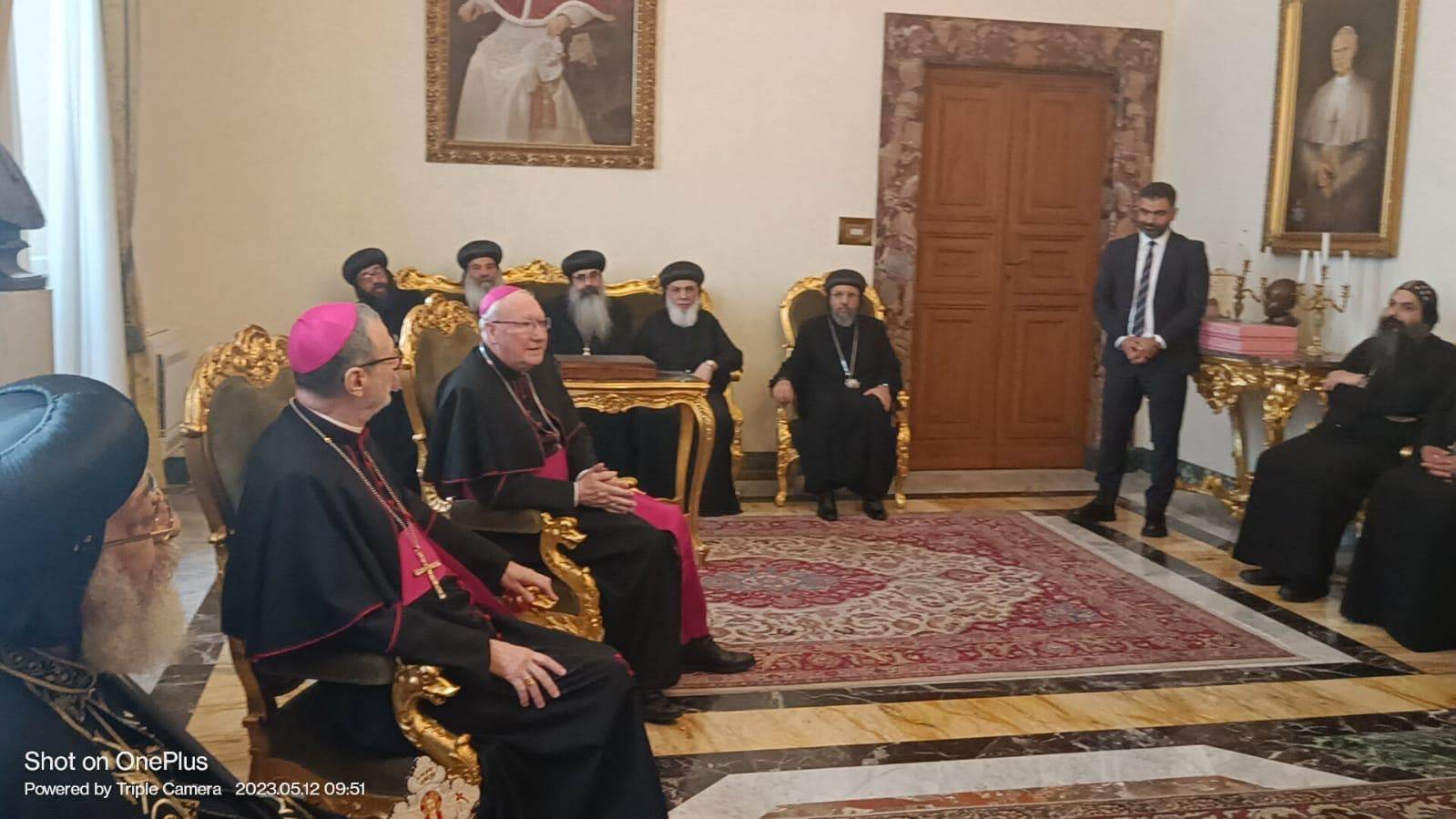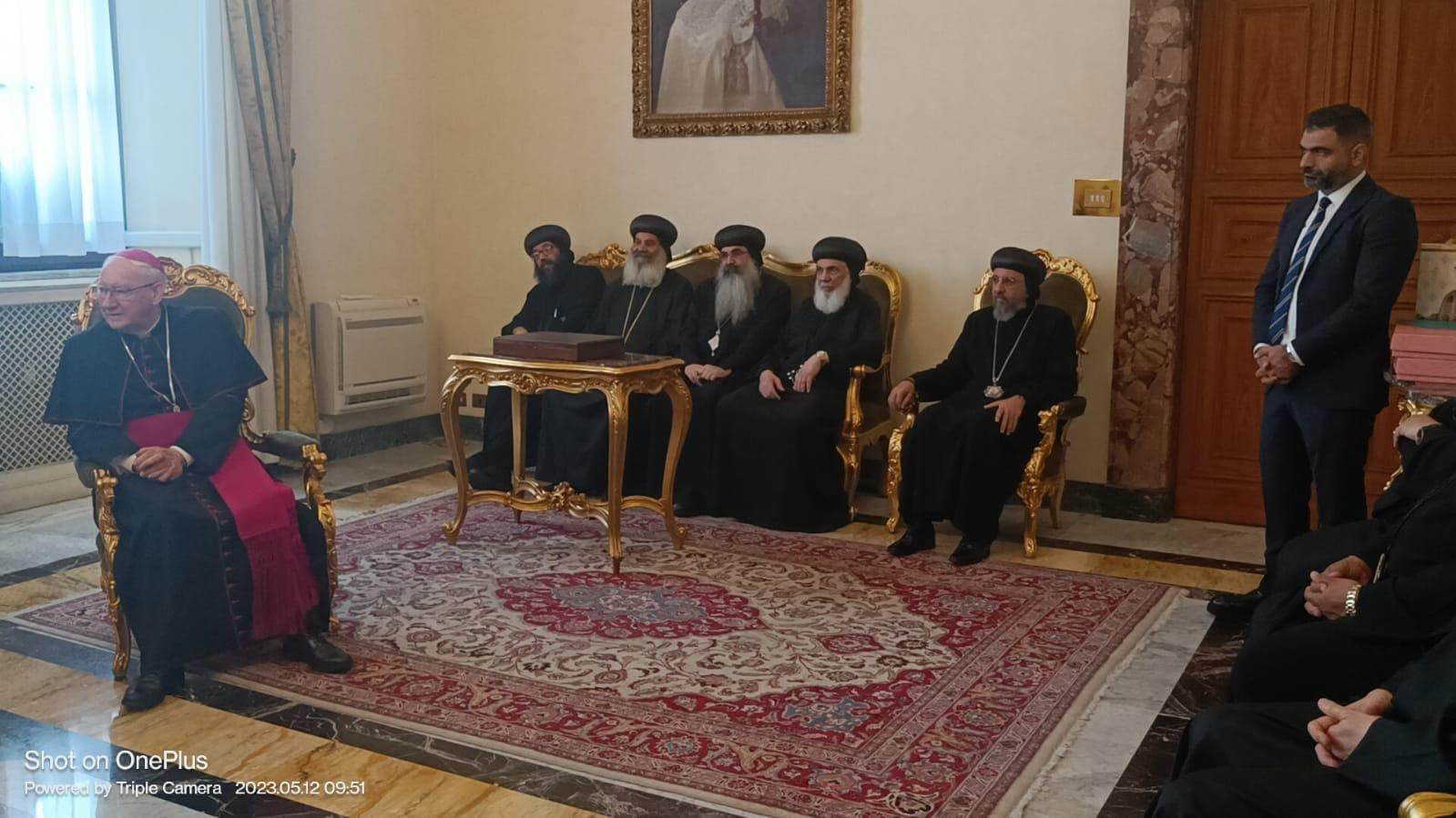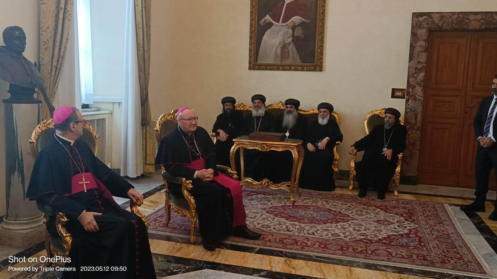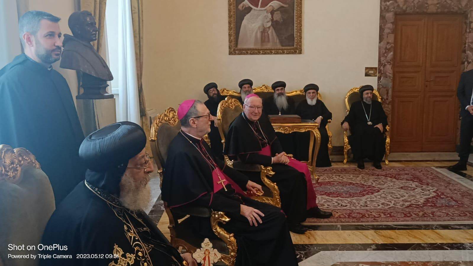 وكان في استقبال البابا الكاردينال جوجوريتي، رئيس القسم، وأعضائه، واستمر اللقاء حوالي 90 دقيقة تحدث خلالها الكاردينال عن تاريخ الكنيسة والكنائس الكاثوليكية الشرقية، وعن تاريخ الحوار بين الكنيستين القبطية والكاثوليكية عبر الخمسين سنة الماضية.