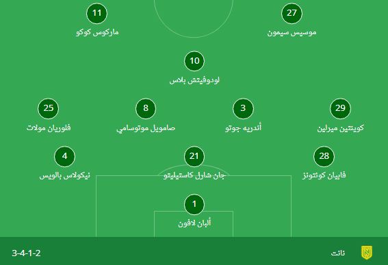 ويأتي فريق نانت في المركز السابع عشر في جدول ترتيب الدوري الفرنسي برصيد 32 نقطة.