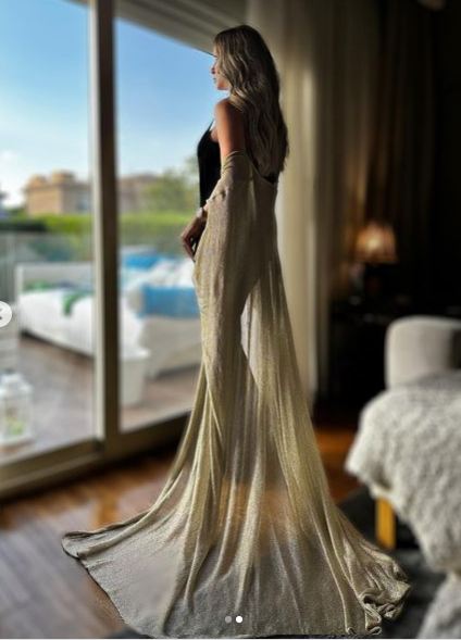 لفتت الفنانة ريم مصطفى الأنظار بإطلالة جذابة ومثيرة، مرتدية فستانا مجسما باللون "الأسود"، ونسقت معه كاردن باللون البيج، مصمم من قماش بدون نقاشات، مما أبرز جمالها وقوامها الممشوق.