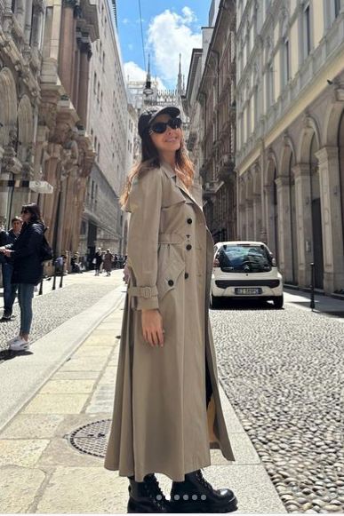 بدت الفنانة نانسي عجرم بإطلالة جذابة ومثيرة، مرتدية بالطو باللون "الجملي"، مصمم من قماش بدون نقاشات ، أكملت اللوك بنظارة شمسية وقبعة وحذاء أسود، مما أبرز جمالها وقوامها الممشوق.