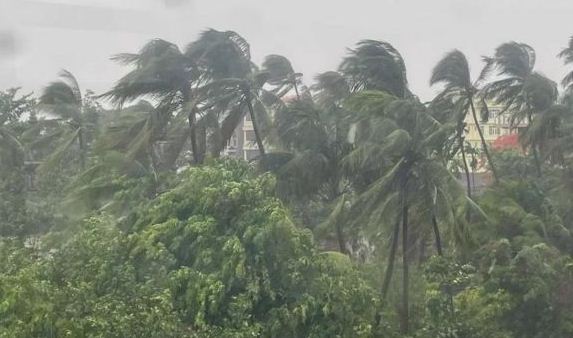 أشارت إلى أن الرياح القوية أطاحت ببرج اتصالات في مدينة "سيتوي" ، حوالي ظهر اليوم مع اقتراب الإعصار من المنطقة.