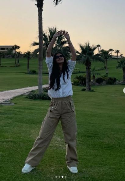 جذبت الفنانة ريم سامي الأنظار بإطلالة "كاجوال" جذابة ومثيرة، مرتدية بنطال أوفر سايز باللون "البيج"، ونسقت معه قميص أبيض، مصمم من قماش بدون نقاشات، أكملت اللوك بنظارة شمسية وحذاء أبيض، مما أبرز جمالها وقوامها الممشوق.