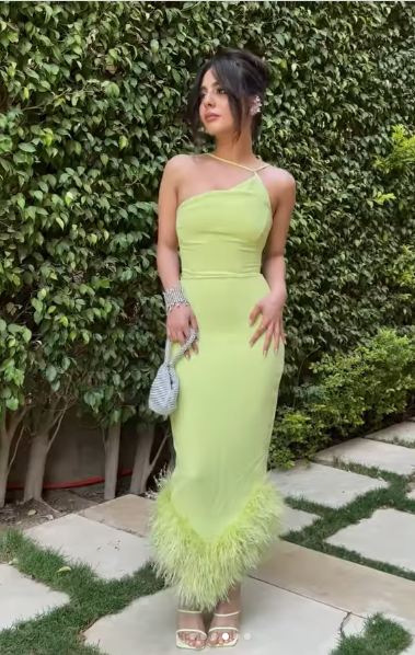 خطفت الفنانة مايان السيد الأنظار بإطلالة جذابة ومثيرة، مرتدية فستانا مجسم باللون "الأصفر"، ينتمي الي قصة ألوان شولدر، مصمم من قماش بدون نقاشات، أكملت اللوك بصندل كعب عالي وشنطة فضي، مما أبرز جمالها وقوامها الممشوق.
