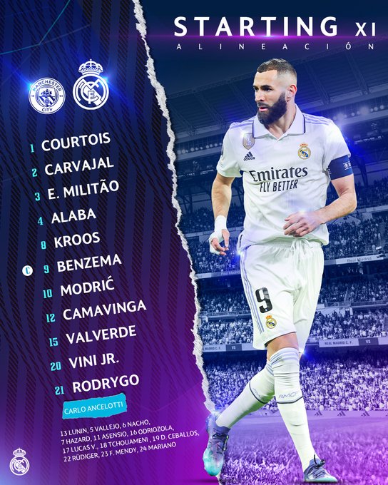 بنزيما يقود تشكيل ريال مدريد لمواجهة مانشستر سيتي