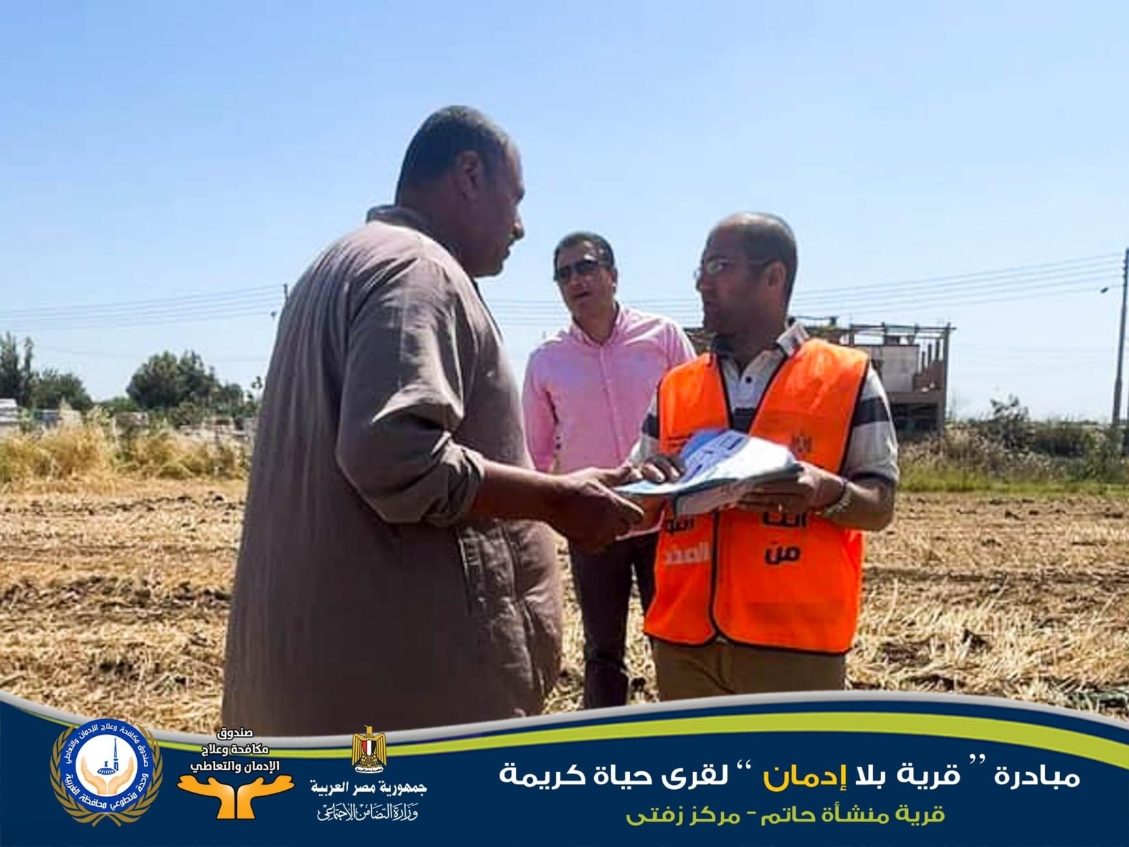 أطلق صندوق مكافحة وعلاج الإدمان والتعاطي برئاسة الدكتورة نيفين القباج وزيرة التضامن الاجتماعي ورئيس مجلس إدارة الصندوق مبادرة "قرية بلا إدمان"، لتوعية العمال بالأراضي الزراعية في العديد من القرى الريفية  بمخاطر الإدمان.