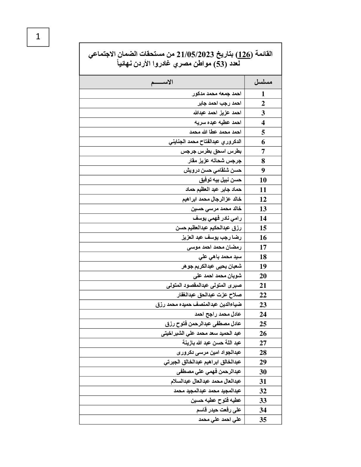 تحويل مستحقات الضمان الاجتماعي لـ 53 عاملًا مصريًا غادروا الأردن نهائيًا
