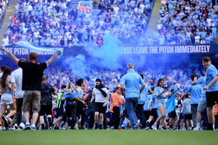 وعمت الاحتفالات بين اللاعبين بعد نهاية لقاء تشيلسي، ونزلت جماهير الفريق السماوي إلى أرضية الملعب من المدرجات للاحتفال بتتويج السيتي، قبل أن يتدخل رجال الأمن لإخراجهم خارج أرضية الملعب.