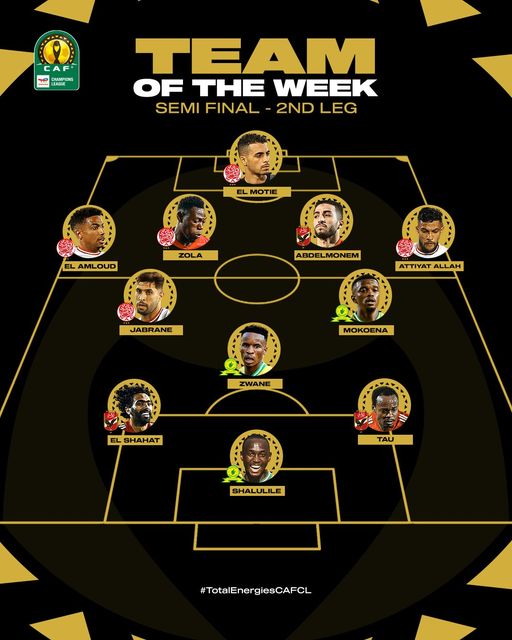 ونشر الموقع الرسمي لـ "الكاف"، تشكيلة مواجهات الإياب للدور نصف نهائي دوري الأبطال الأفريقية التى أسفرت نتائجها عن الأتي: