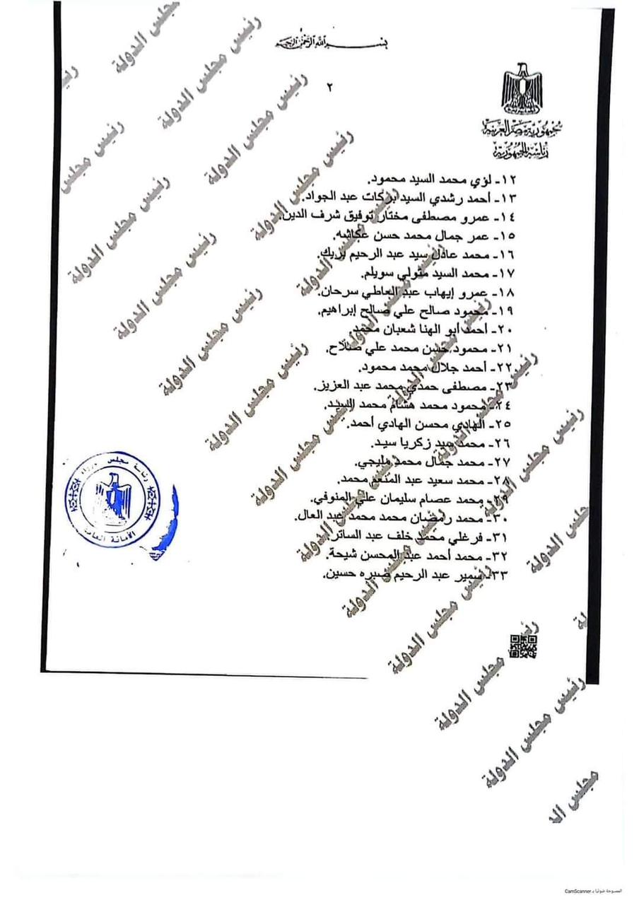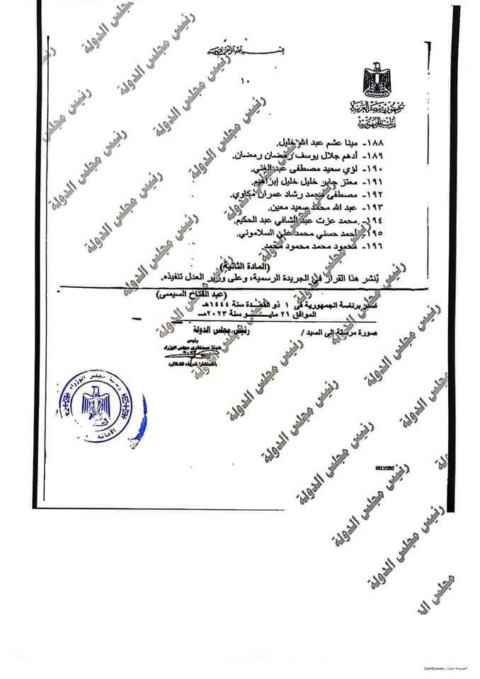ونص القرار أنه بعد الاطلاع علي الدستور وعلي قانون مجلس الدولة الصادر بالقانون رقم 47 لسنة 1972، وعلي موافقة المجلس الخاص للشئون الإدارية بمجلس الدولة بجلسته المعقودة بتاريخ 25 ديسمبر 2022 وبناء علي ما عرضه، قرر وزير العدل في المادة الأولي تعيين مندوبًا بمجلس الدولة من خريجي دفعة 2020 السادة الأساتذة الاتية أسماؤهم.