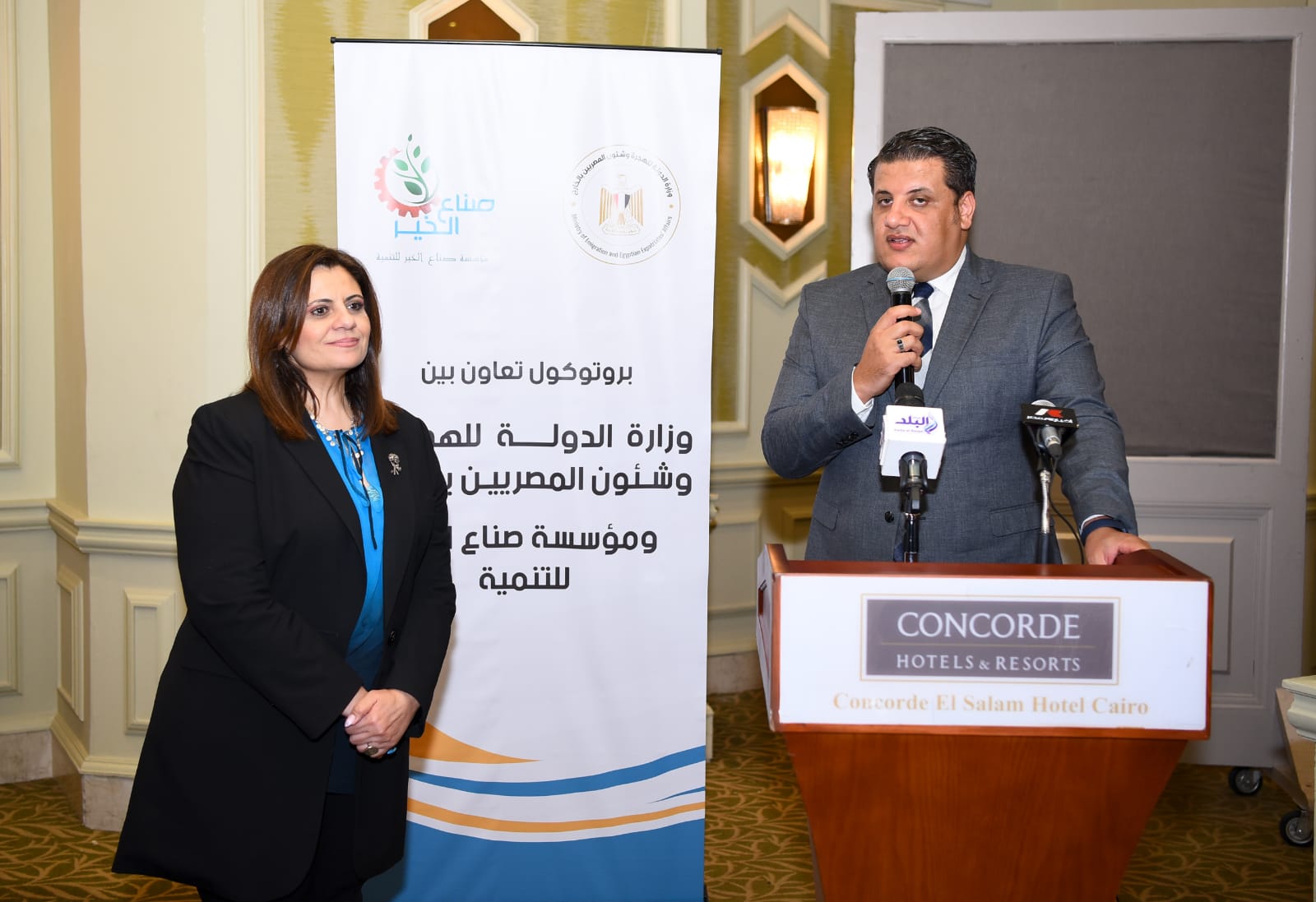 وقع البروتوكول السفير عمرو عباس مساعد وزيرة الهجرة لشئون الجاليات، عن وزارة الهجرة، وهاني عبد الفتاح المدير التنفيذي لمؤسسة صناع الخير للتنمية عن المؤسسة.