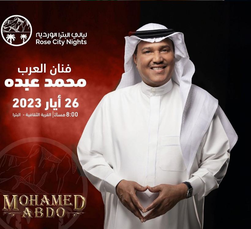 يأتي حفل محمد عبده في مدينة البتراء الوردية جنوب العاصمة عمان، والتي تم اختيارها ضمن عجائب الدنيا السبع، وتتضمن عدد من الحفلات الغنائية خلال الفترة المقبلة.