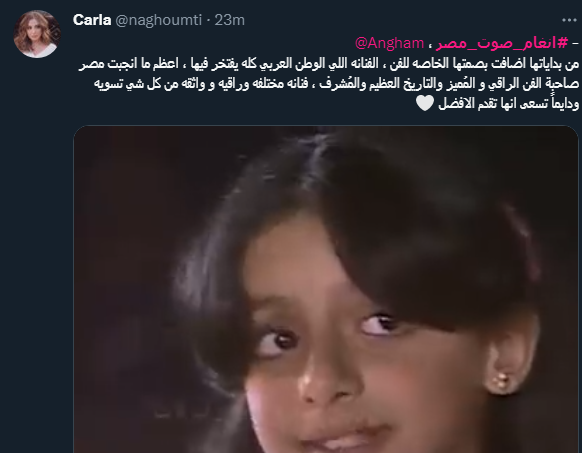 وأضاف آخر: "شهادة كبار ملحني و شعراء و فناني الوطن العربي الذين رسموا خارطة الفن الحديث و تقديرهم لصوت مصر أنغام".