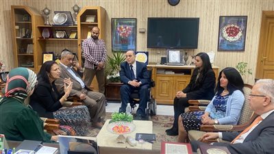 عقد اللقاء بحضور الدكتورة منى فؤاد عطية القائم بعمل نائب رئيس الجامعة للدراسات العليا والبحوث، الدكتور وليد السروجى نائب رئيس الجامعة لشئون خدمة المجتمع وتنمية البيئة، والدكتورة مها حسنى عميد كلية الآداب، والدكتور حسام حمدي عميد كلية التربية، والدكتور خالد مالك وكيل كلية التربية للدراسات العليا، والدكتورة امانى السيد وكيل كلية الاداب لشئون خدمة المجتمع، والدكتور عماد صالح رئيس قسم المكتبات بكلية الاداب، والدكتور أشرف رضا مستشار رئيس الجامعة للفنون والثقافة، والدكتور عمرو السيد مدير مركز الحساب العلمى، وأشرف امام مدير عام الإدارة العامة للمكتبات.