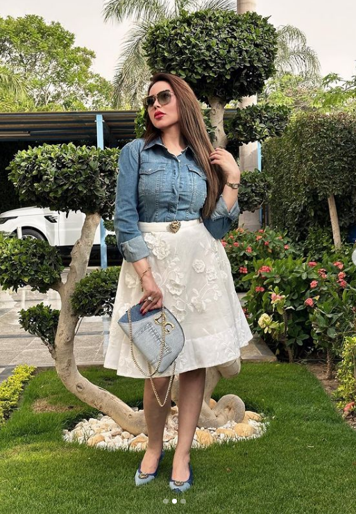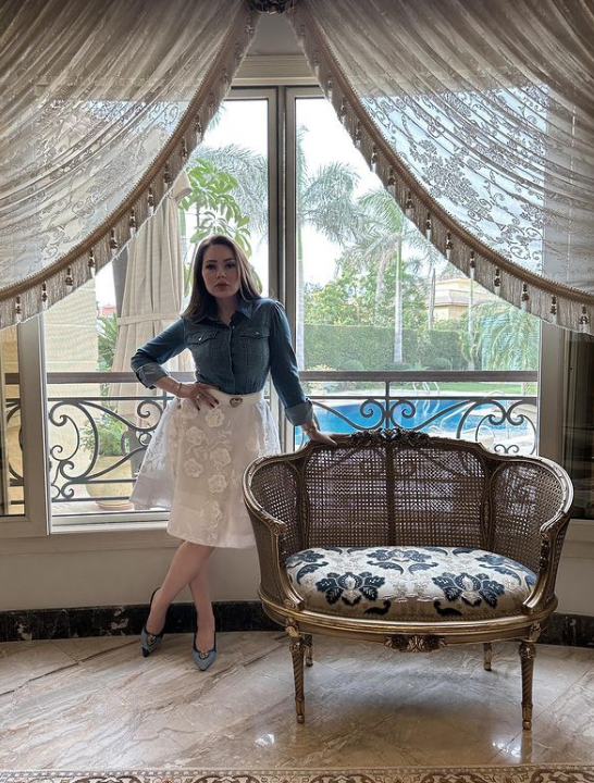 لفتت الإعلامية أسما إبراهيم الأنظار بإطلالة جذابة وساحرة، مرتدية جيبة قصيرة باللون "الأبيض" ونسقت معها قميص جينز باللون الأزرق، مصمم من قماش من دون نقاشات، أكملت اللوك بشنطة وحذاء كعب عالي ونظارة شمسية، مما أبرز جمالها وقوامها الممشوق.