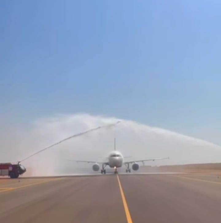 استمرارًا لنجاح المطارات المصرية في اجتذاب خطوط طيران عالمية.. استقبل مطار برج العرب الدولي أولى رحلات شركة أويا الليبية للطيران من طراز ايرباص ٣٢٠.