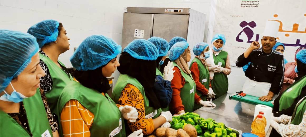 كما أكدت أنه في إطار هذه المبادرة تتلقى السيدات تدريباً على يد أحد الطهاه الماهرين بالمحافظة للتعرف علي طرق التخطيط و طلب وإعداد و تجهيز الأغذية للولائم الكبري والوجبات الجاهزة وطرق حساب الكميات الإقتصادية والإلتزام بمعايير جودة الغذاء والتخطيط  للقوى العاملة المساعدة في المطبخ  والتعريف بالتجهيزات الأساسية للمطابخ من أجهزة وأدوات .