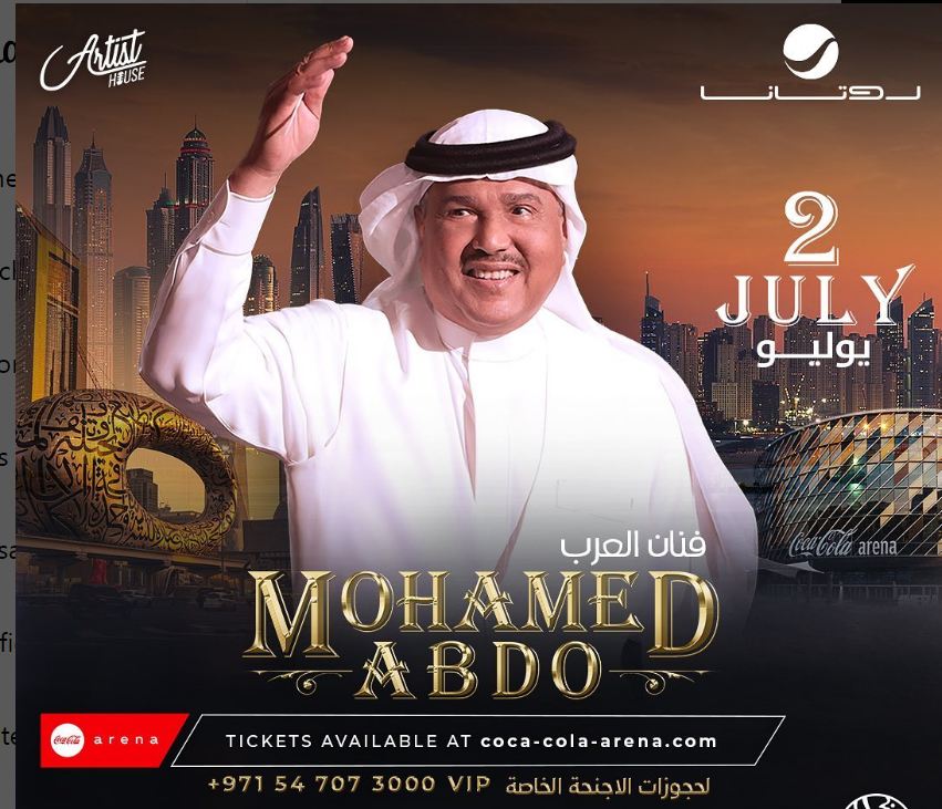 ومن المقرر أن يقام حفل محمد عبده في الثاني من يوليو المقبل، على مسرح كوكاكولا أرينا بـ دبي، وسيتم طرح التذاكر قريبًا عبر الموقع الإليكتروني الخاص بها.