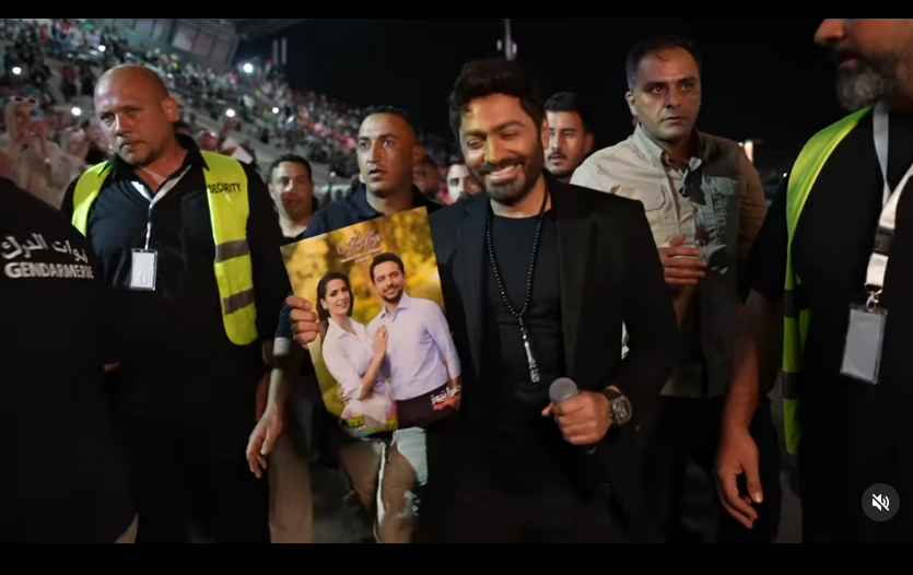 أشعل النجم تامر حسني استاد عمّان الدولي في مدينة الحسين الرياضية بمناسبة عقد قران الأمير الحسين بن عبدالله الثاني ولي عهد ملك الأردن، وكان ذلك وسط أعداد مهولة من الجمهور، بينما تألق تامر حسني أثناء دخوله وهو محاطا بمحبيه الذين ملئوا الاستاد وتافعلوا مع أغنيته الشهيرة "مشوار"، حيث أنه نشر ايضا مقطع فيديو عبر حسابه الشخصي بموقع التواصل الإجتماعى "إنستجرام"، يضم مجموعة من أغانيه القديمة والحديثة التي قدمها داخل الحفل، مع تفاعلات تبث كمية مشاعر إيجابية من قبل جمهوره الأردن.