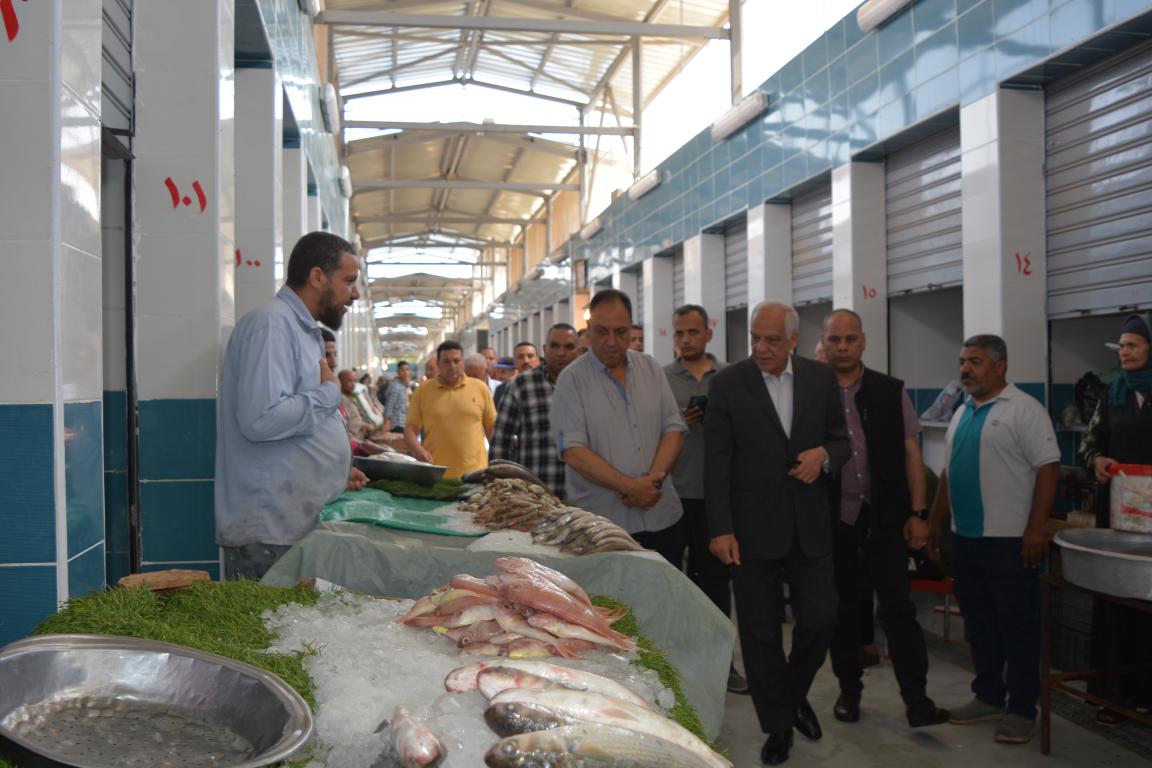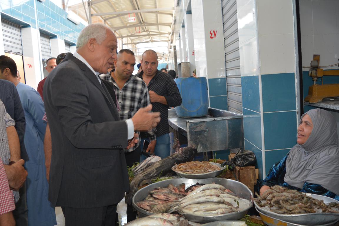 محافظ الجيزة يتابع حركة البيع والشراء بسوق السمك الحضارية بالمنيب