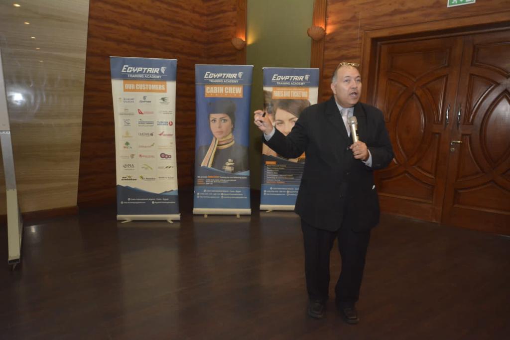 كان فى استقبالهم الطيار وليد سليمان رئيس أكاديمية مصر للطيران للتدريب، والطيار معتز فتح الله نائب رئيس الأكاديمية، إذْ رحَّب رئيس الأكاديمية بالسادة محررى شئون الطيران وأشار إلى أن الدور الفعال لهذا الصرح التدريبي الكبير في دعم صناعة النقل الجوي محليًا ودوليًا ورفع كفاءة العاملين والمتدربين للوصول لأعلى مستويات التدريب الموصي بها إقليميًا ودوليًا، موضحًا أنه فى ضوء توجيهات الفريق محمد عباس حلمي وزير الطيران نحو الاهتمام بمجال التدريب وتبادل الخبرات كونها من المحاور الرئيسية؛ لرفع كفاءة وأداء العنصر البشرى فى مختلف مواقع العمل لتأهليهم وتدربيهم على أحدث البرامج والمناهج النظرية والعملية، والتي تسهم في تقديم أعلى جودة من الخدمات للنهوض والارتقاء بسوق العمل لتعزيز القدرات التنافسية لقطاع الطيران المدنى المصري،  وهو ما تحرص عليه الشركة القابضة لمصر للطيران برئاسة المهندس يحيى زكريا بعقد مزيد من الدورات التدريبية لمواكبة التطور الهائل والسريع في مختلف أنشطة صناعة النقل الجوي، وكذا فتح آفاق جديدة للتعاون مع مختلف الأكاديميات والمؤسسات في أنحاء العالم كافة بهدف الالتزام بالمعايير الدولية، فى مجال التدريب والتوسع فى أسطول الشركة الجوية لتلبية احتياجات العملاء على المستوى المحلي والإقليمي والدولي في ضوء الطلب الحالي والمستقبلي.