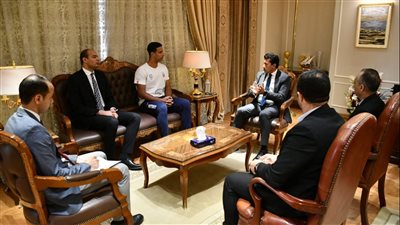 وزير الشباب والرياضة يلتقي لاعب منتخب مصر لتنس الطاولة عمر عصر بالعاصمة الإدارية الجديدة
