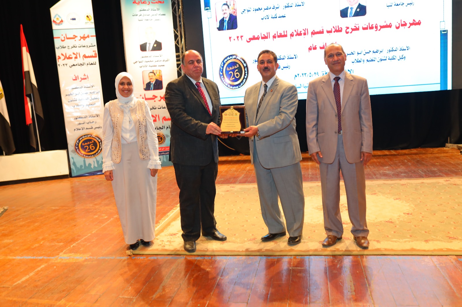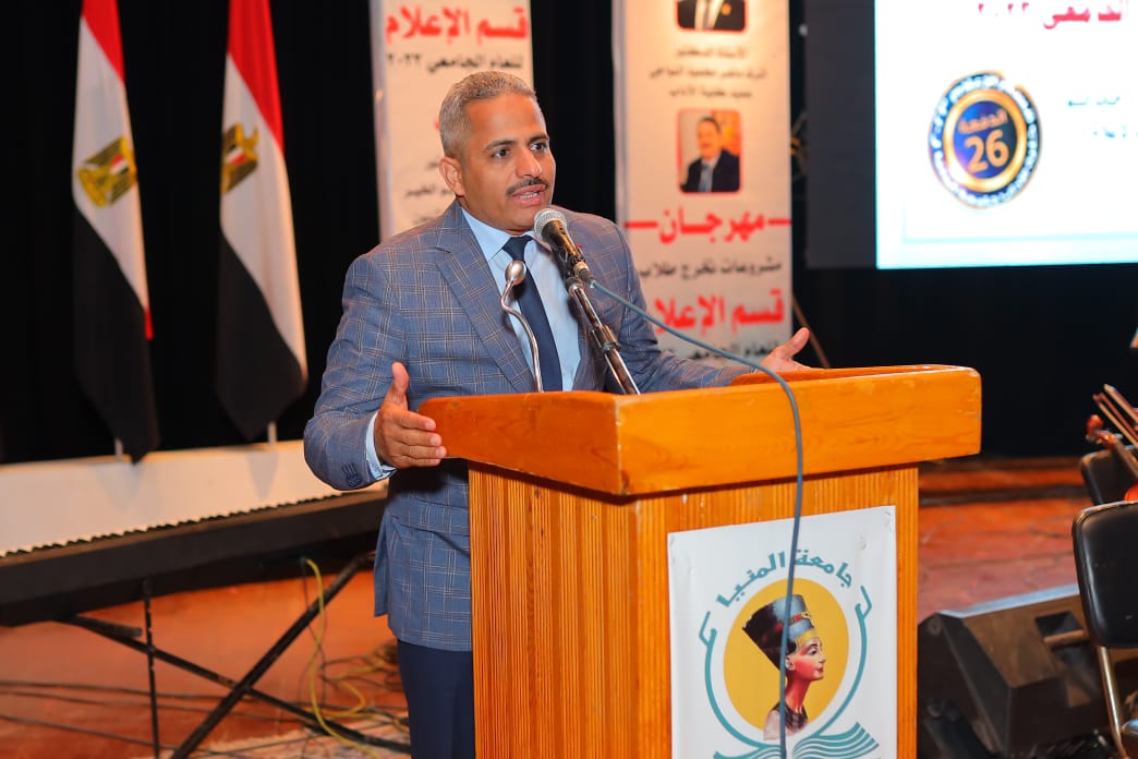 خلال حفل قسم الإعلام جامعة المنيا