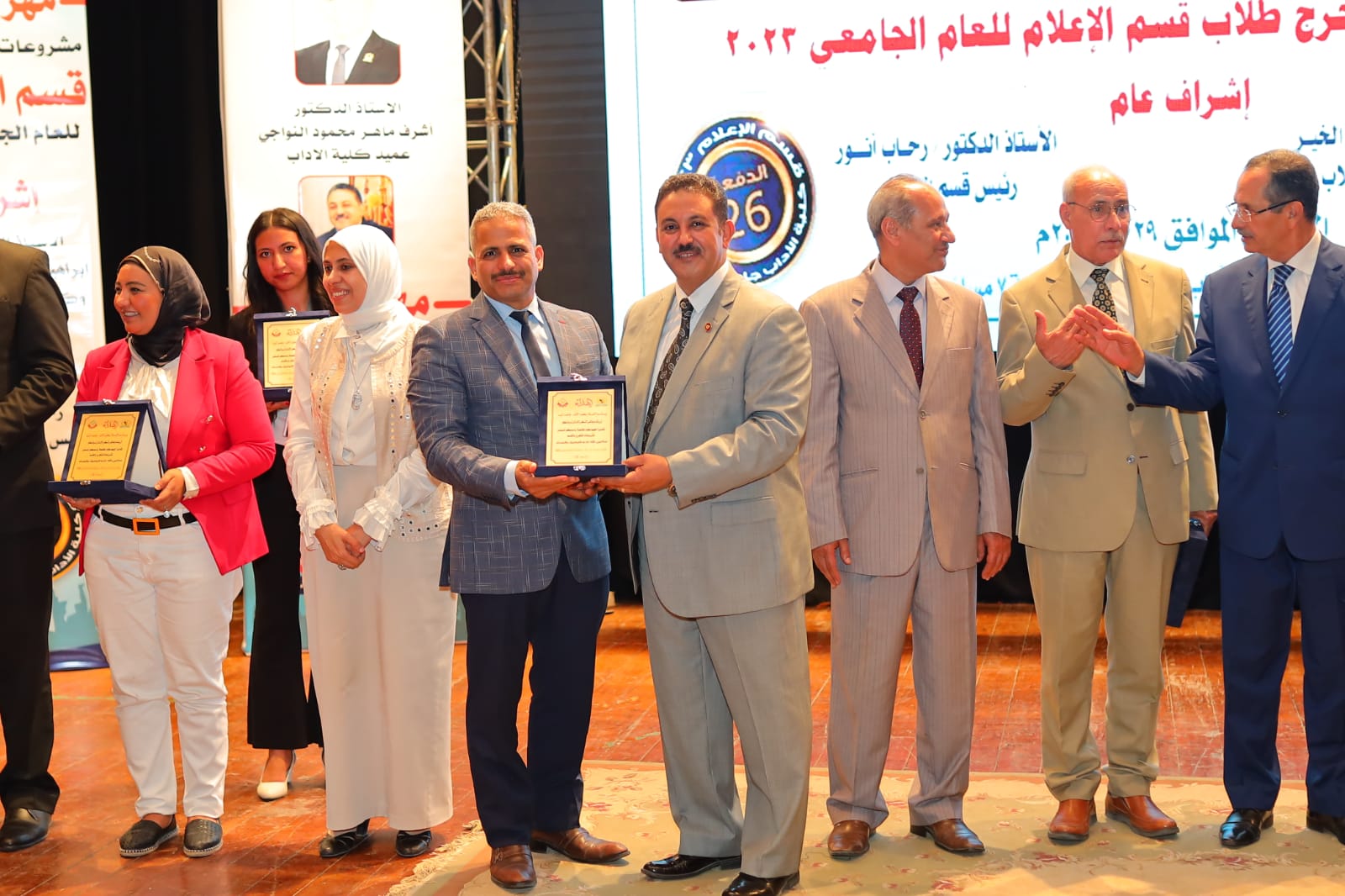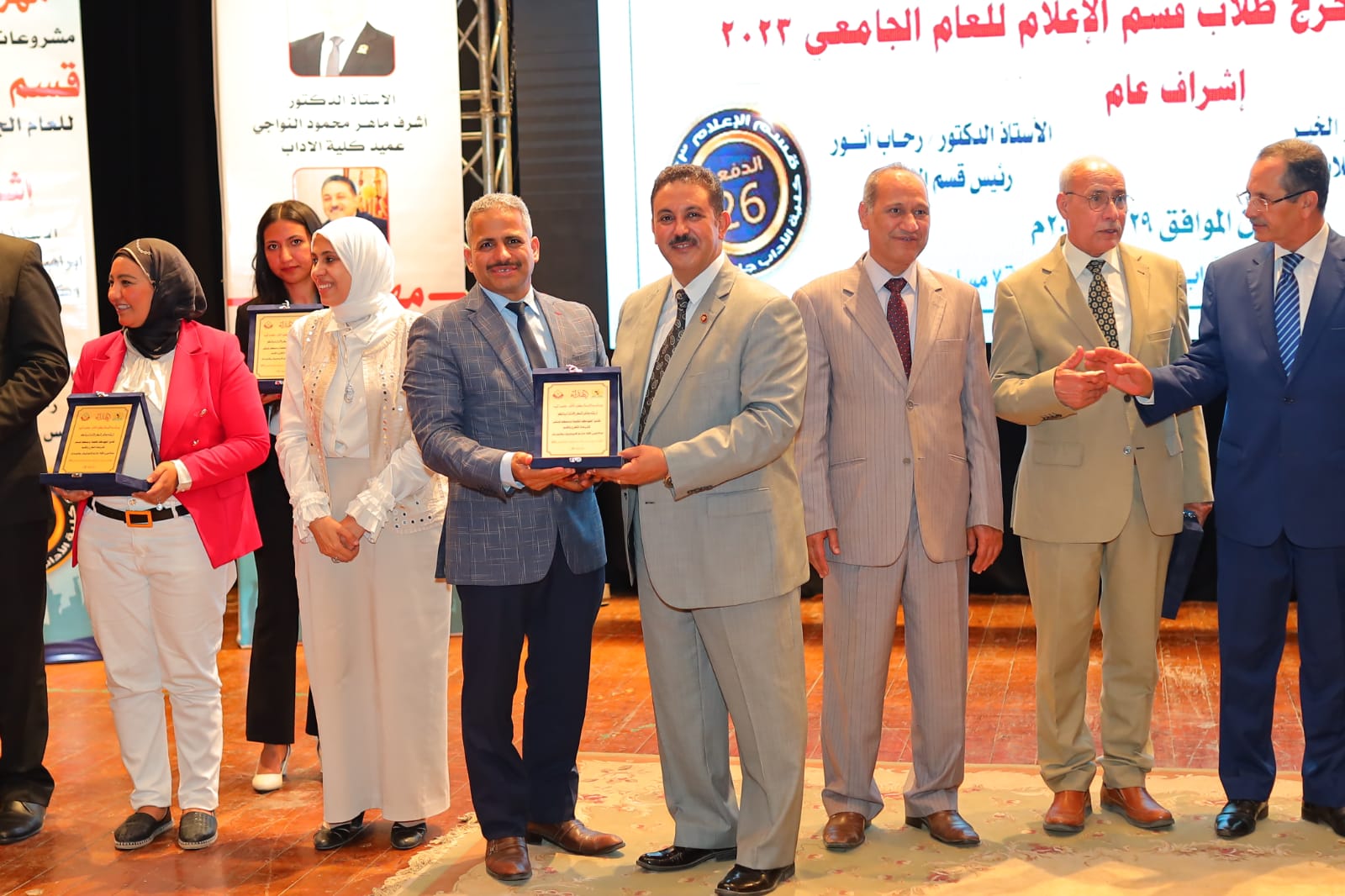 إلي جانب تكريم عدد كبير من الصحفيين والإعلاميين خريجي قسم الإعلام ومنهم: