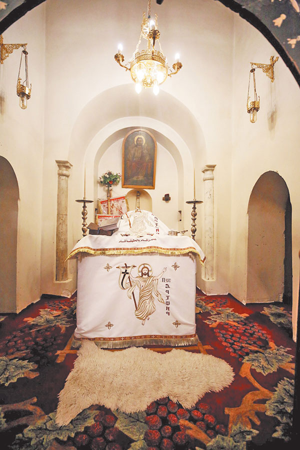 يصحبنا الراهب البشوش من الكنيسة الأثرية المليئة بالمُصلين قبل لحظات من بدء صلوات الرهبان، ثم نذهب إلى الحصن الذى صنع بإبداع، ونتجه إلى الكنيسة مارجرجس، ويبدو عليها الحداثة والتطوير، ويُحيط بمذبحها حامل الأيقونات الرخامى وتعلوها آيات الإنجيل المحفورة بخطوط مميزة، ثم نتبع الراهب لعازر ونمر فى طرقات مزينة بالأشجار.