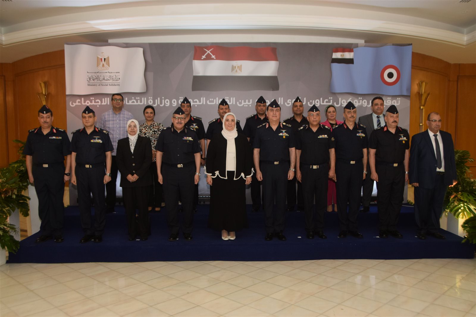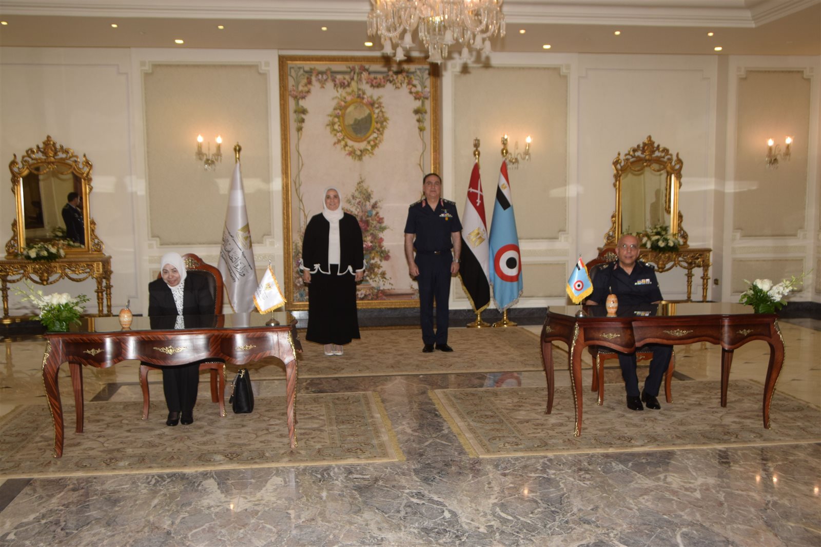 فى سياق متصل وقعت القوات الجوية بروتوكول تعاون مع وزارة التضامن الاجتماعى بهدف تعظيم أوجه التعاون، والاستفادة من الإمكانيات الفنية والعلمية فى مجال تأهيل الأطفال ذوى الإعاقة من خلال تنفيذ أحدث البرامج العلاجية، بالإضافة إلى تنفيذ الدورات المهنية وورش العمل والمؤتمرات التى تحقق الارتقاء بالمستوى العلمى للكوادر العاملة فى هذا المجال.