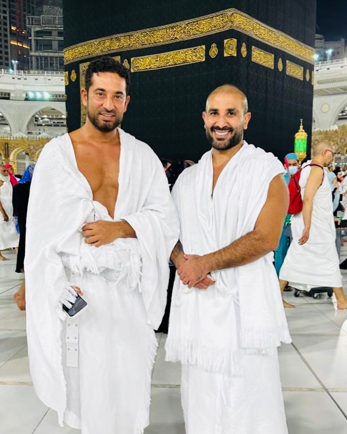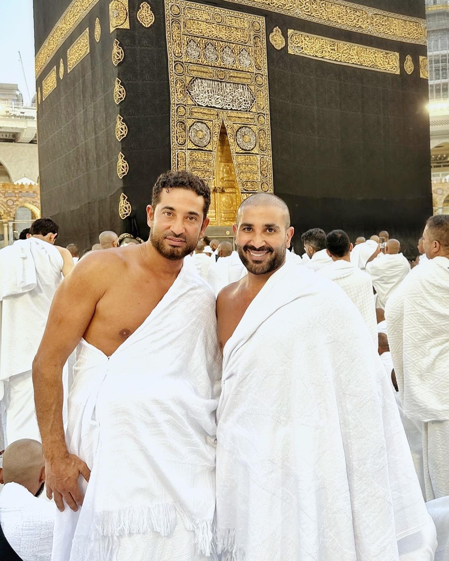 عمرو وأحمد سعد بملابس الإحرام من الحرم المكي (صور)