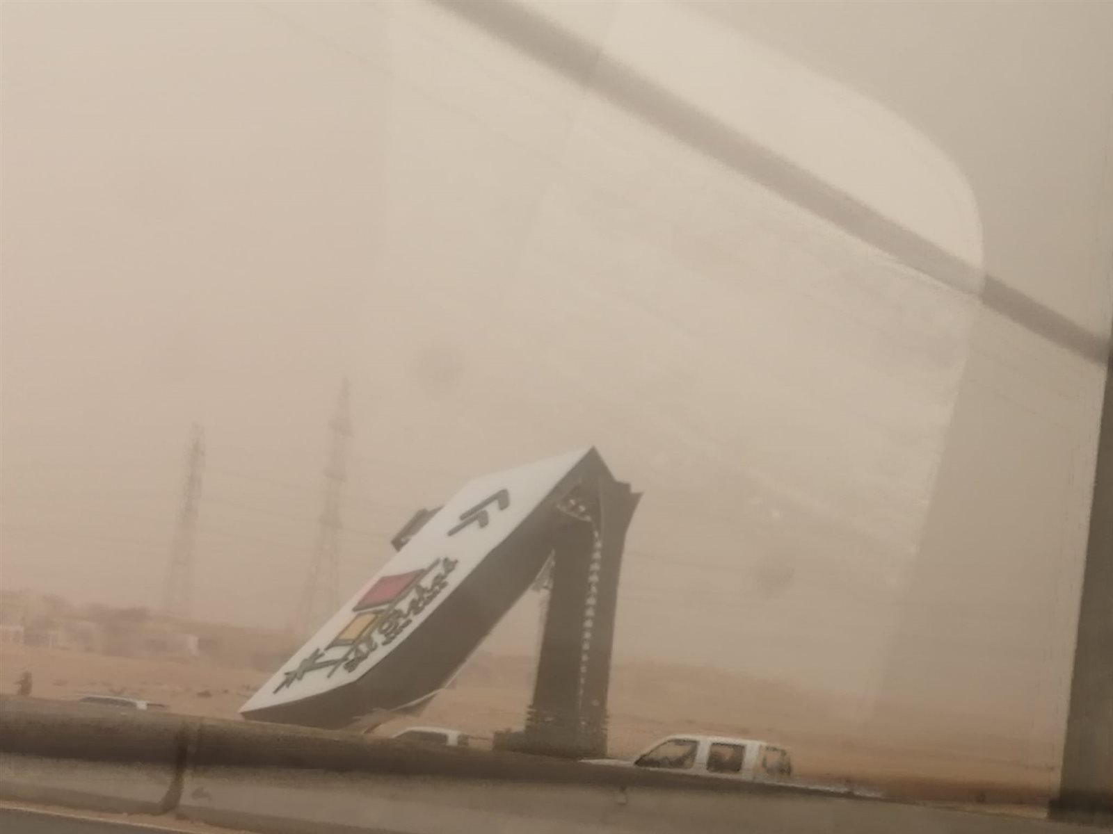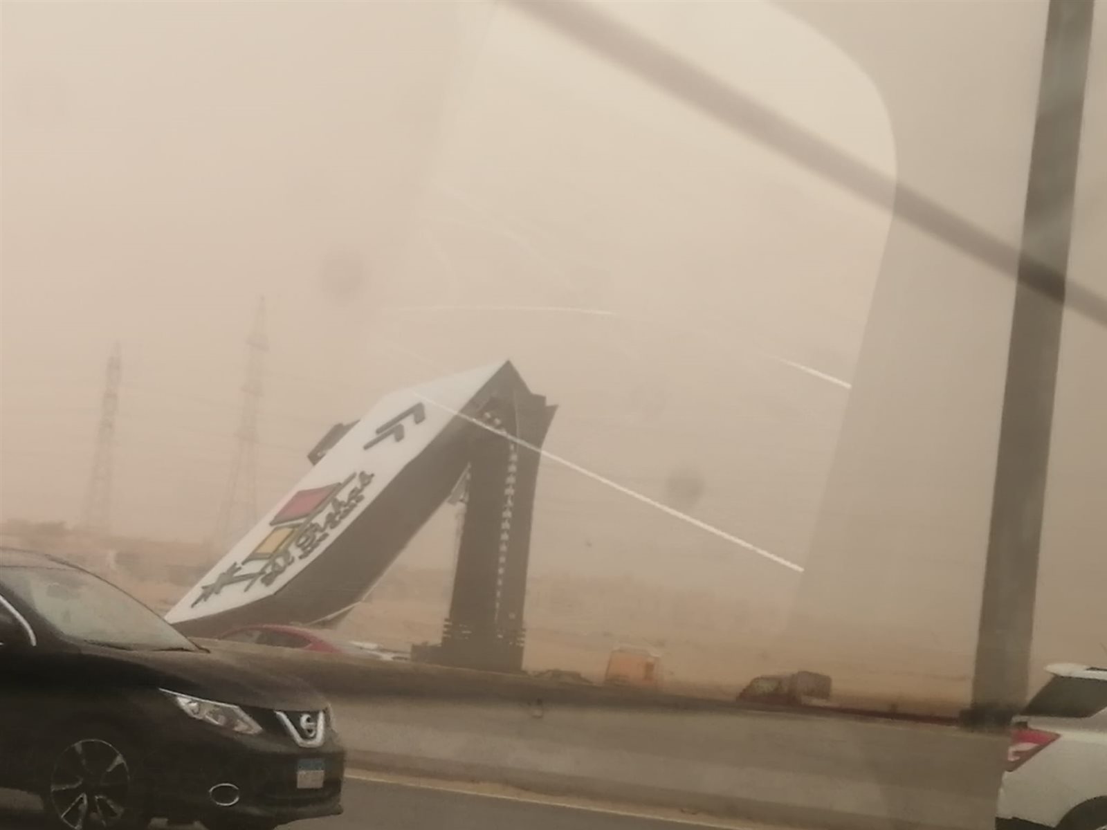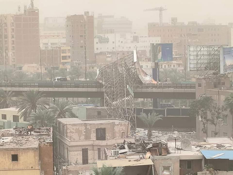 كما أسقطت العاصفة يافطة الرحاب العملاقة على طريق السويس، وتحولت الأجواء إلى ظلام دامس وانعدام الرؤية على الطريق، وانتقل رجال المرور إلى المكان لتسيير حركة السيارات ومتابعة دورية لغرفة العمليات لرصد أى معوقات لحركة السيارات.