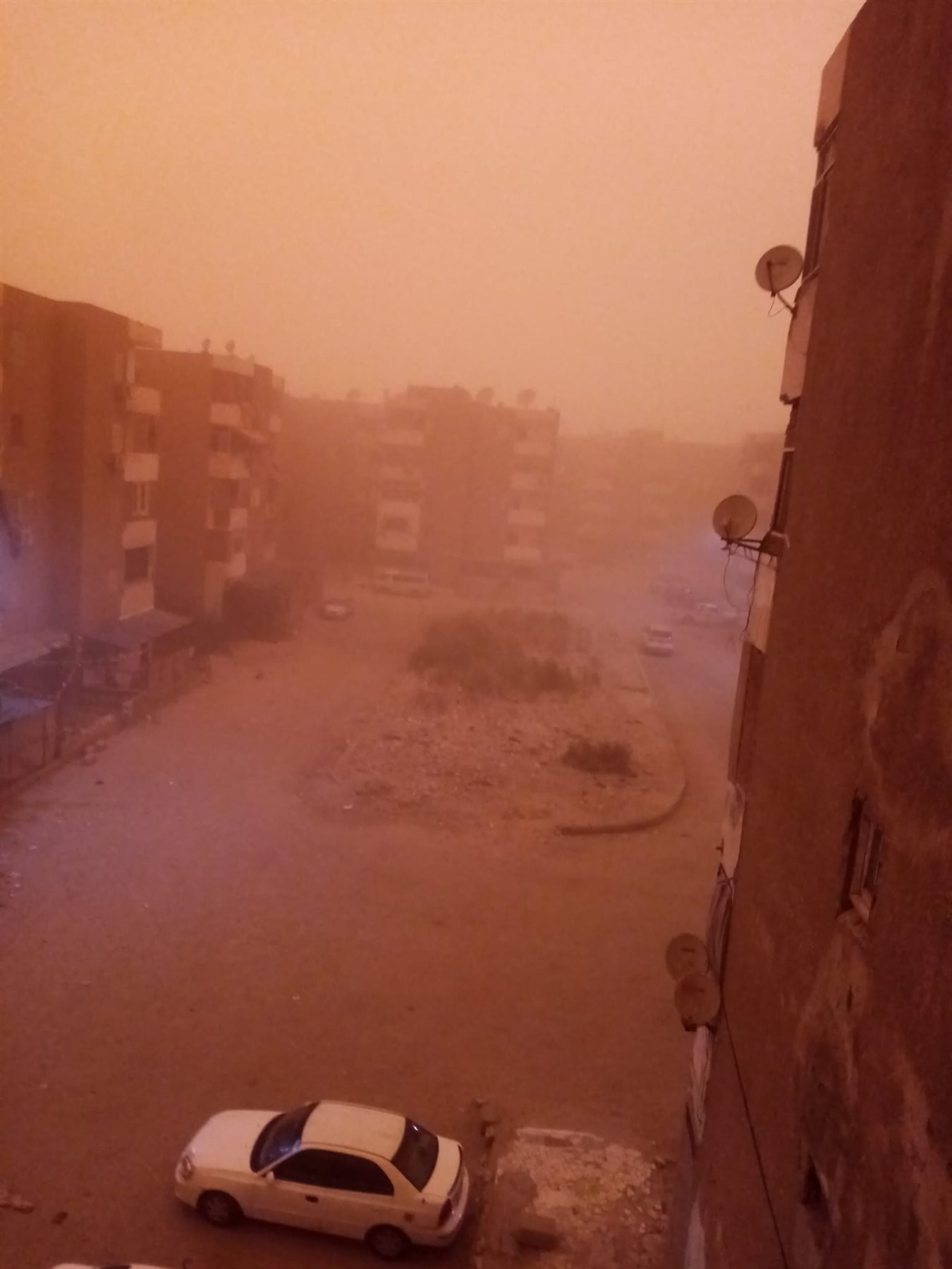 كثَّفتْ الخدمات المرورية وجودها أعلى الطريق، لتنظيم حركة السيارات، وتلقت غرفة عمليات النجدة، بلاغًا بانعدام الرؤية على طريق السويس الصحراوى بسبب ظهور عاصفة ترابية.