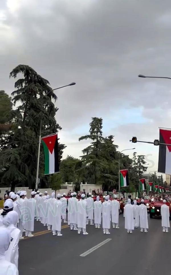انطلق الموكب في مشهد مهيب محاطًا بولي العهد الأمير الحسين وزوجته رجوة آل سيف، وبدءا الموكب من قصر زهران حتى قصر الحسينية، فى تقليد بدأ منذ 100 عام، وكانت بداياته على الخيل والهجانة، كانت بداية انطلاق الموكب في عهد الملك عبدالله الأول، وطرأت عليه متغيرات تناسب كل مرحلة إلى أن اعتمد له اللون الأحمر.