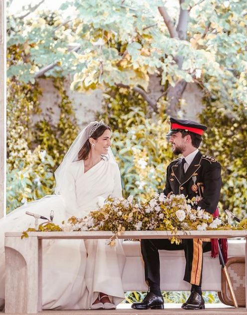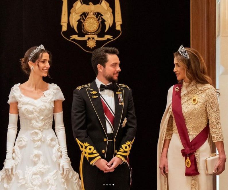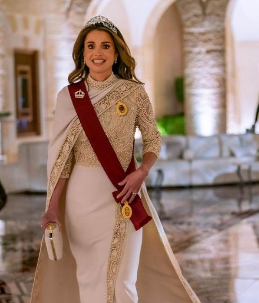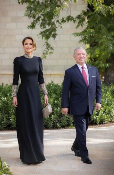 الملكة رانيا تمزج بين الفخامة والاحتشام في حفل قران نجلها الأمير حسين