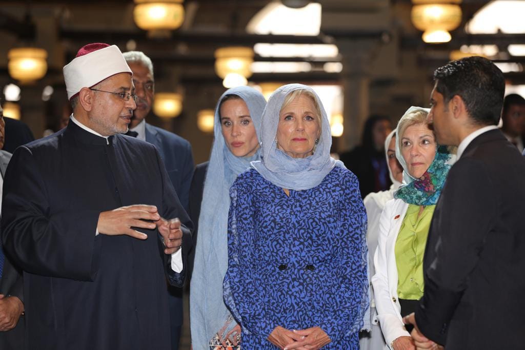 ونشرت صفحة الأزهر الشريف، بموقع التواصل الاجتماعي "فيسبوك"، عددًا من الصور من زيارة جيل بايدن للجامع الأزهر، وكتبت: "أ.د سلامة داود، رئيس جامعة الأزهر، يصطحب السيدة الأولى الأمريكية، جيل بايدن، في جولة داخل الجامع الأزهر".