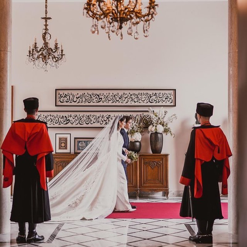 ووفقًا للعادات والتقاليد، بدأ الإمام الذي عقد القران بالحديث عن الزواج وأهميته في الإسلام، وبعد توقيع العروسين والشاهدين على العقد، اختتم الإمام المراسم بأدعية مؤثرة متمنيًا لهما زواجًا مباركًا.