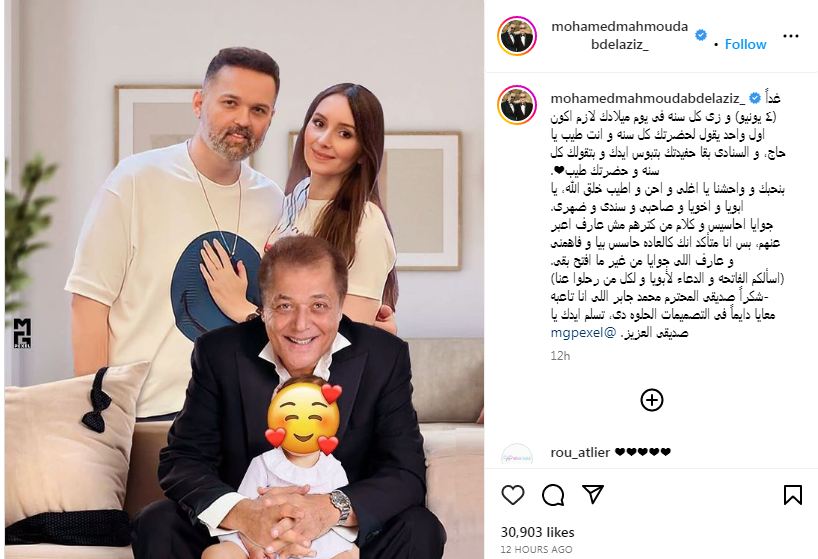 أحيا الفنان محمد محمود عبدالعزيز، ذكرى ميلاد والده الفنان القدير محمود عبدالعزيز، وذلك عبر حسابه الرسمي على موقع تبادل الصور والفيديوهات الشهير “إنستجرام”.