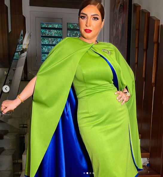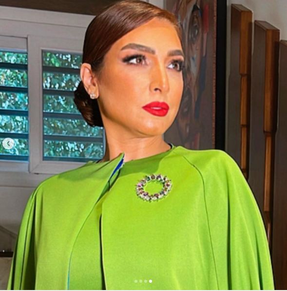 لفتت الفنانة روجينا الأنظار بإطلالة جذابة ومثيرة، مرتدية فستانًا باللون "الأخضر"، بأكمام منفوخة، مصمم من قماش بدون نقاشات، أكملت اللوك بحذاء فضي كعب عالي، مما أبرز جمالها وقوامها الممشوق.