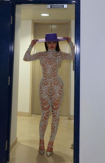 هيفاء وهبي تنافس عارضات الأزياء بإطلالة شفافة (صور)
