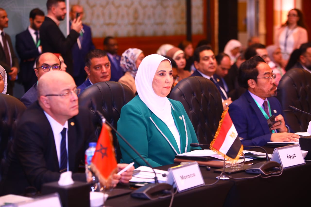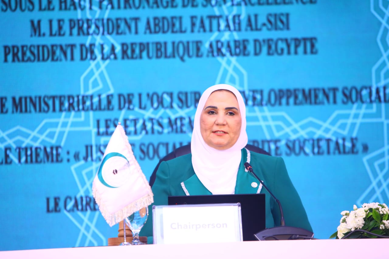 وأوضحت وزيرة التضامن الاجتماعي في الكلمة نيابة عن دولة رئيس مجلس الوزراء أن الأحداث المتصاعدة التي يشهدها العالم لن تنال من جهودنا المتزايدة في الإصلاح ، وفي إعادة بناء دولنا من الداخل وحمايتها من الخارج، ومن تنمية مواردنا وتعظيم الانتاجية، وتقديم أفضل سبل الرعاية والحماية والتنمية لجميع الفئات دون أن يترك أحد خلف الركب، وكما تفرض هذه التحديات مخاطر عالية على استقرار الأسرة والمجتمع الاسلامي، فانها تتيح ايضا فرصا لمزيد من التعاون بين الدول الإسلامية، لأن تاريخنا المشترك وتجاربنا أثبتت أن الخروج من الأزمات والتحديات إنما يكون بالتكاتف والتضامن، ونؤكد أَنَّ التنمية المستدامة، التي تتضمن الاستثمار في البشر والرفاه الاجتماعي، والنهضة الاقتصادية، لَا يمكن أَنْ تتحقق إِلَّا مِنْ خِلَالِ وجود سياسات اجتماعية عادلة، وانفاذ نظام شامل للحماية والرعاية والتمكين.