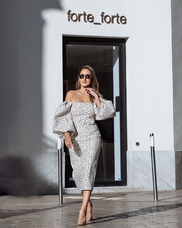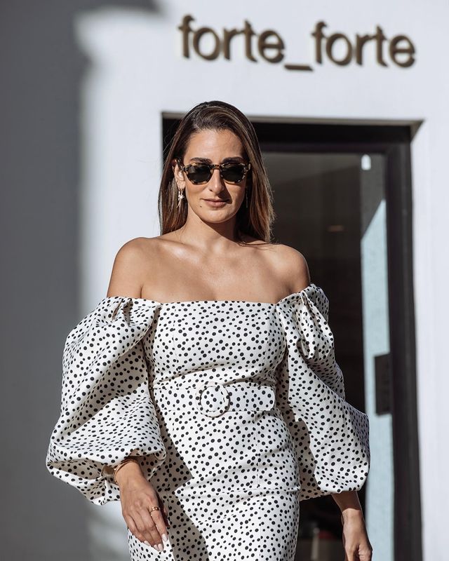 جذبت أمينة خليل الأنظار بإطلالة جذابة ومثيرة، مواكبة لأحدث صيحات الموضة، مرتدية فستانا مجسم علي خطي السندريلا يمزج بين اللون "الأبيض والأسود" وينتمي إلي قصة الاوف شولدر، بأكمام منفوخة، صمم من قماش بنقاشات مختلفة، أكملت اللوك بنظارة شمسية وصندل كعب عالي، مما أبرز جمالها وقوامها الممشوق.