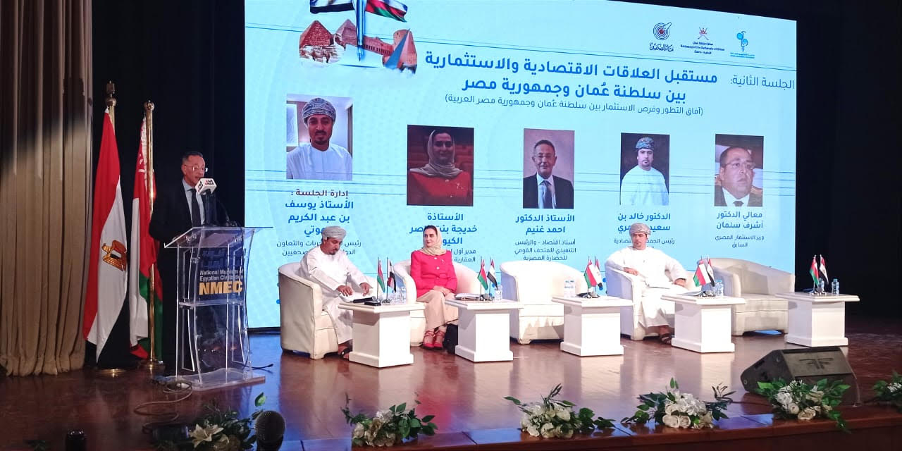 وأعرب الدكتور أحمد غنيم الرئيس التنفيذي لهيئة المتحف، خلال كلمته التي ألقاها في الجلسة الحوارية التي عقدت خلال الملتقى تحت عنوان: "مستقبل العلاقات الاقتصادية والاستثمارية بين سلطنة عمان ومصر..آفاق التطور وفرص الاستثمار"، عن سعادته باستضافة المتحف لهذا الحدث الهام، داخل هذا الصرح العظيم بأجوائه العريقة التي تعكس تاريخ مصر العظيم، مثمناً على عمق العلاقات التاريخية  بين البلدين والحرص على تعزيز هذه العلاقات في كافة المجالات ولاسيما الاقتصاد والذي يعد أحد أهم الركائز الأساسية لتقوية أواصر هذا التعاون، وما تتطلع إليه من أجل دعم الشعبيين الشقيقين والمنطقة العربية والإقليم بأكمله.