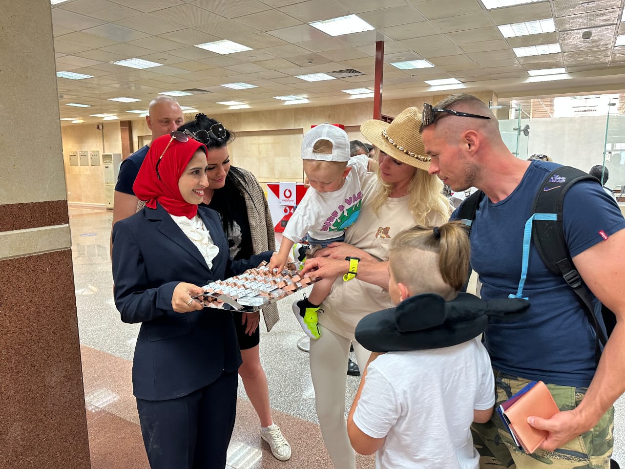 و قد قامت ادارة العمليات والعلاقات العامة بالمطار بالترحيب بالركاب والسائحين وتوزيع الورود والشيكولاته وكتيبات التعريف بمدينة مرسى مطروح ، وكذلك الترحيب بالطائرة بتقليد water salute.