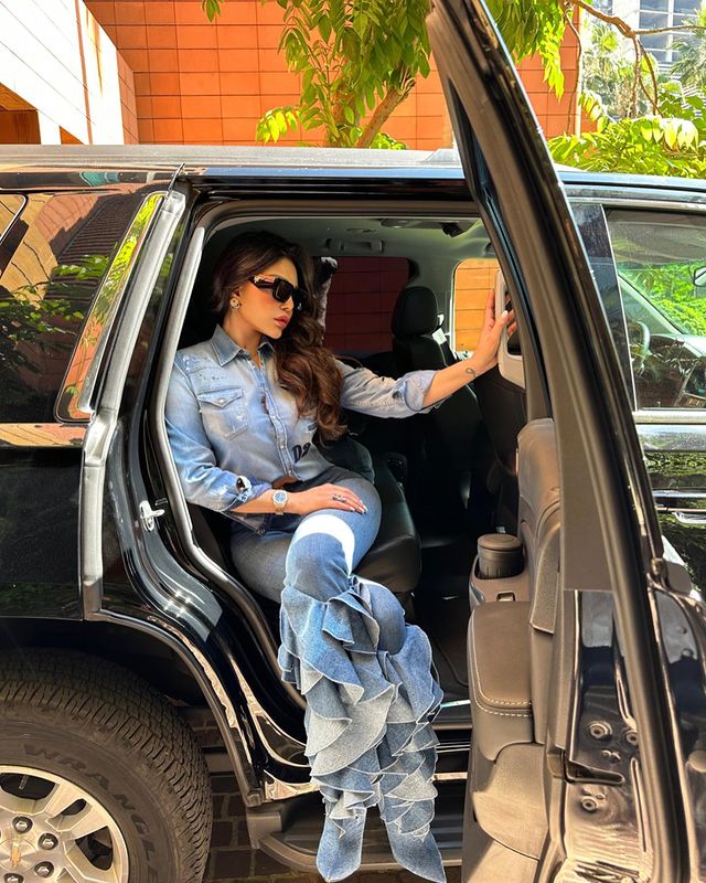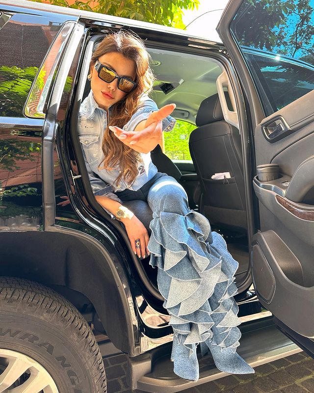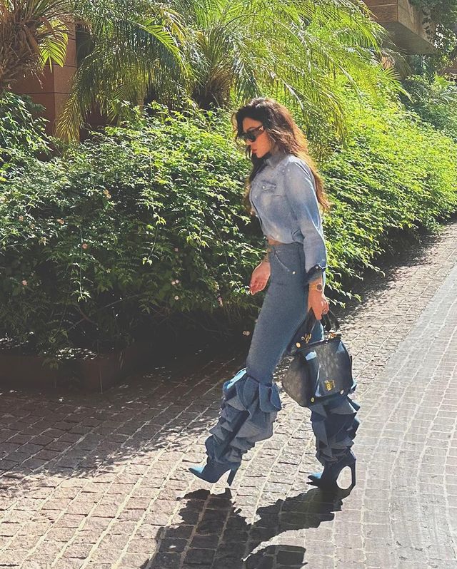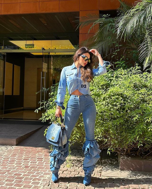 خطفت هيفاء وهبي الأنظار بإطلالة "كاجوال" جذابة وأنيقة، مواكبة لأحدث صيحات الموضة، مرتدية بنطال باللون "الكحلي" ونسقت معه قميص جينز، صمم من قماش بدون نقاشات، أكملت اللوك بشنطة وحذاء كحلي ونظارة شمسية، مما أبرز جمالها وقوامها الممشوق.