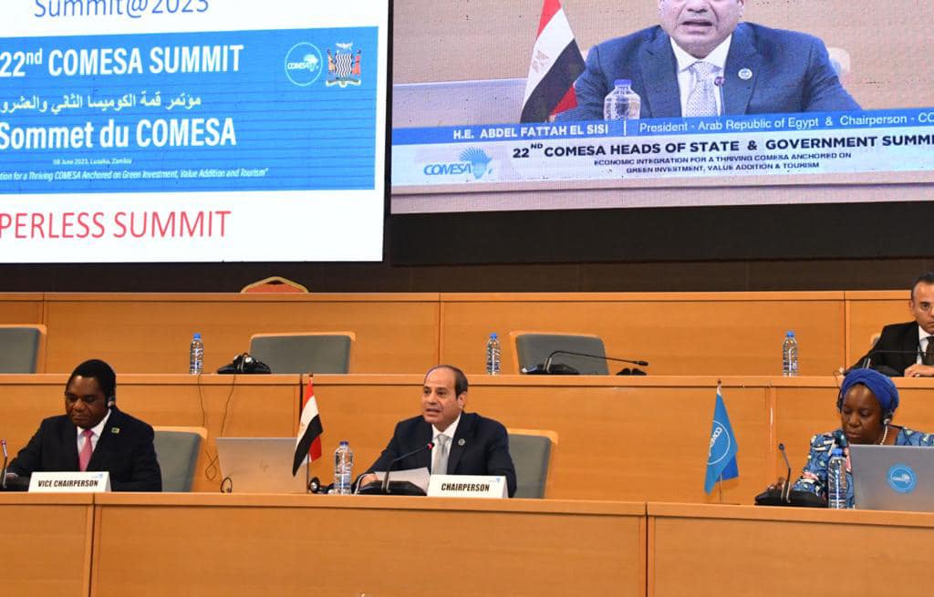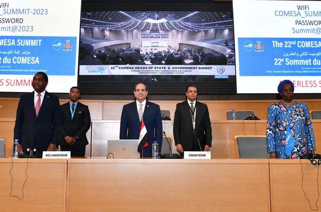 شارك الرئيس عبدالفتاح السيسي اليوم في العاصمة الزامبية لوساكا في أعمال القمة الثانية والعشرين للسوق المشتركة للشرق والجنوب الإفريقي "كوميسا"، وذلك بحضور لفيف من رؤساء وممثلي الدول الإفريقية الأعضاء بتجمع الكوميسا.