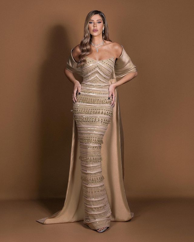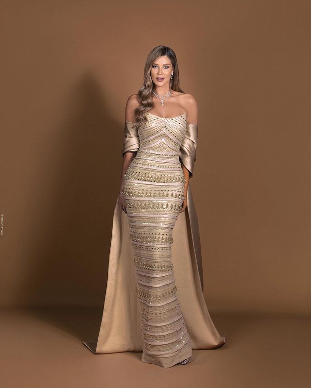 جذبت كارلا حداد الأنظار بإطلالة جذابة ومثيرة، مواكبة لأحدث صيحات الموضة، مرتدية فستانا مجسما باللون "البيج"، ونسقت معه كاردن بيج ستان، ينتمي الي قصة الأوف شولدر، صمم من قماش بنقاشات مختلفة، أكملت اللوك بصندل كعب عالي، مما أبرز جمالها وقوامها الممشوق.